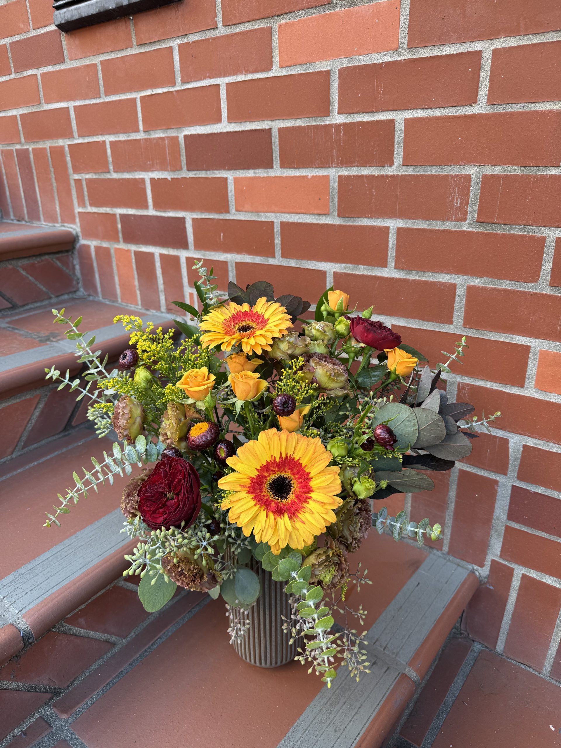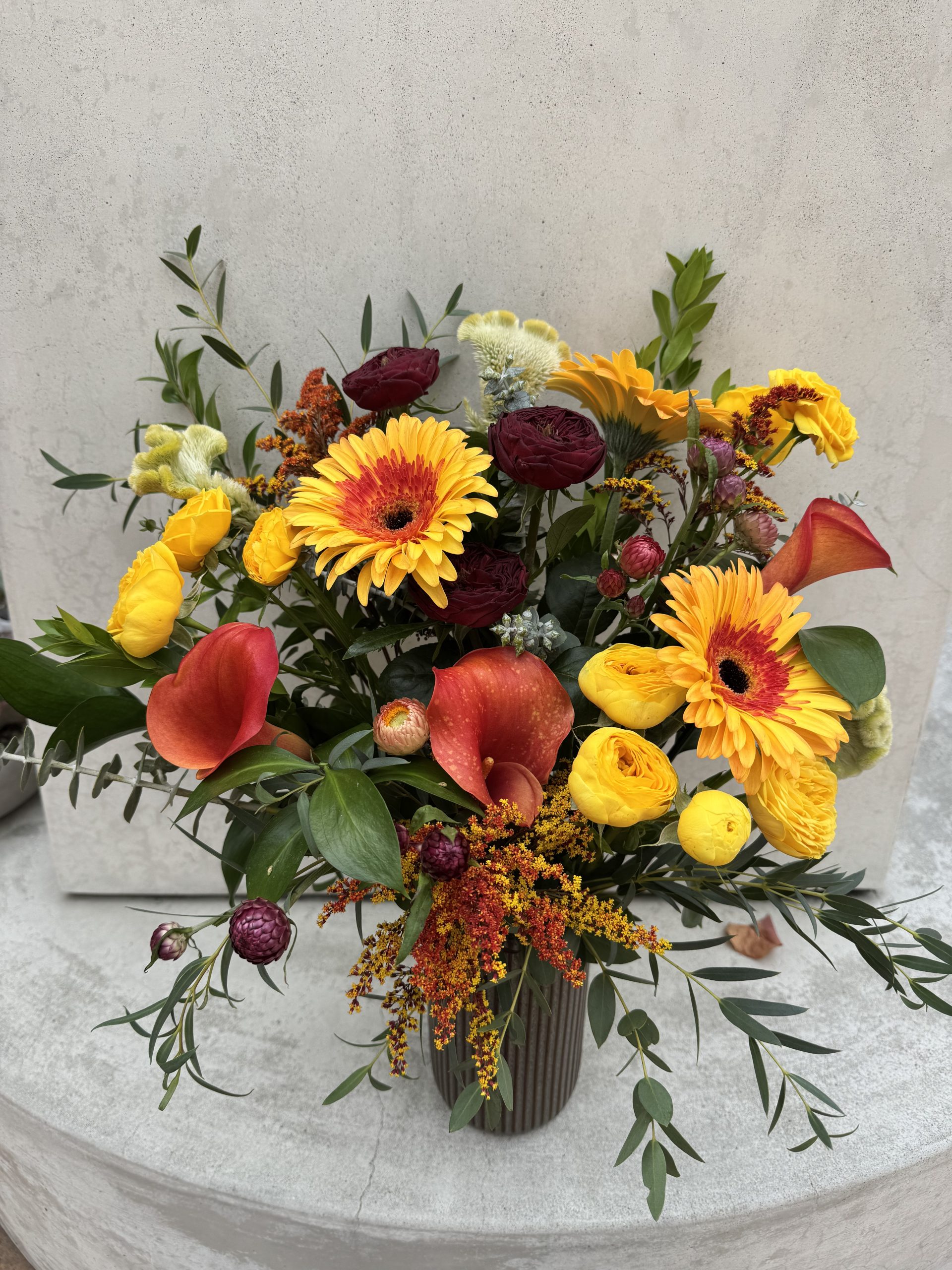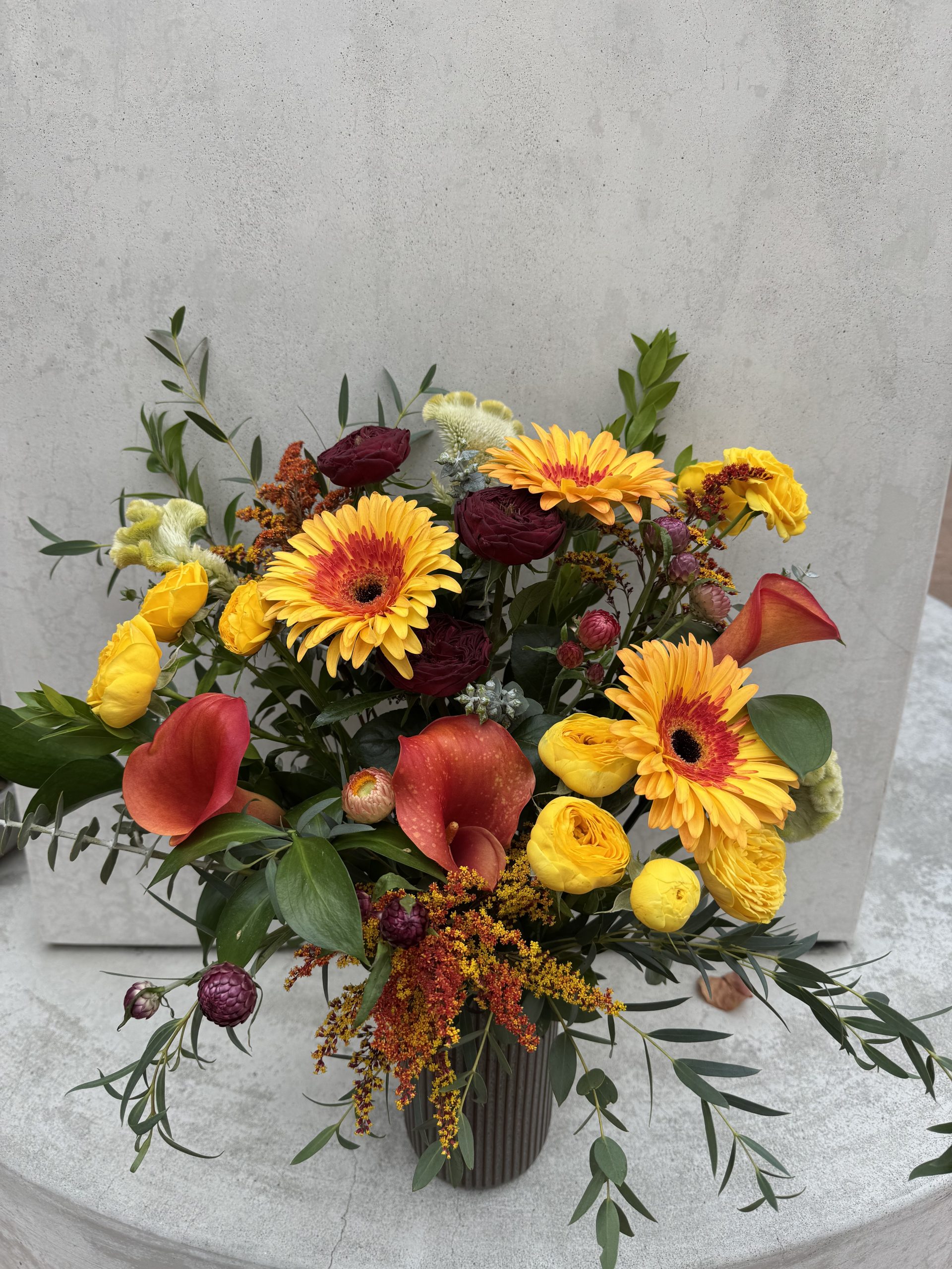 Please note: flower selection is based upon seasonal availability and may vary from image shown. The Design will stay true to the aesthetic of the pictured arrangement and always of full value.