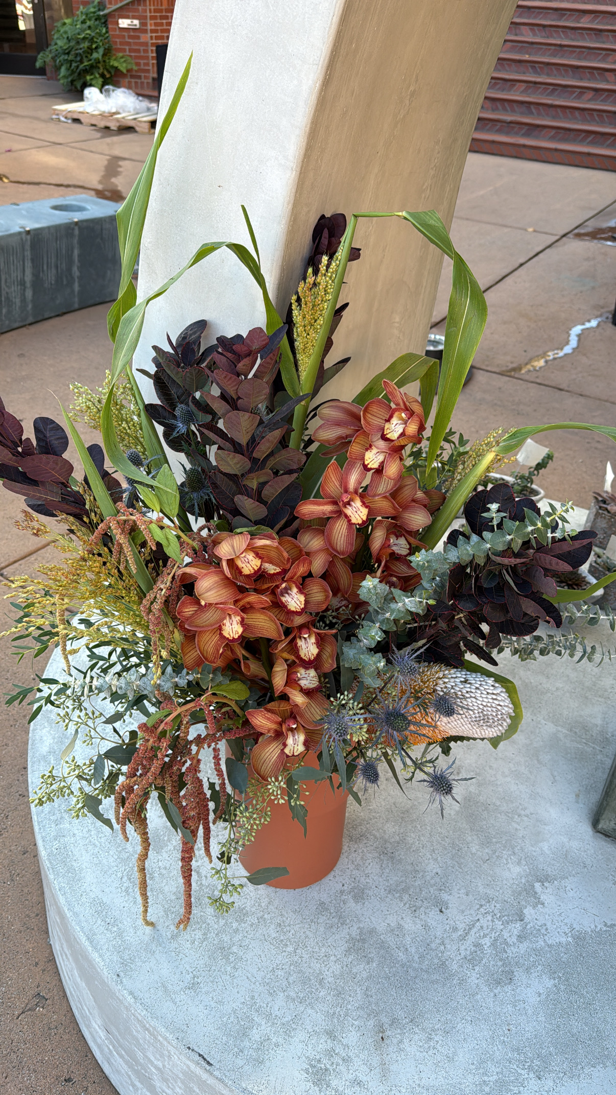 Please note: flower selection is based upon seasonal availability and may vary from image shown. The Design will stay true to the aesthetic of the pictured arrangement and always of full value.