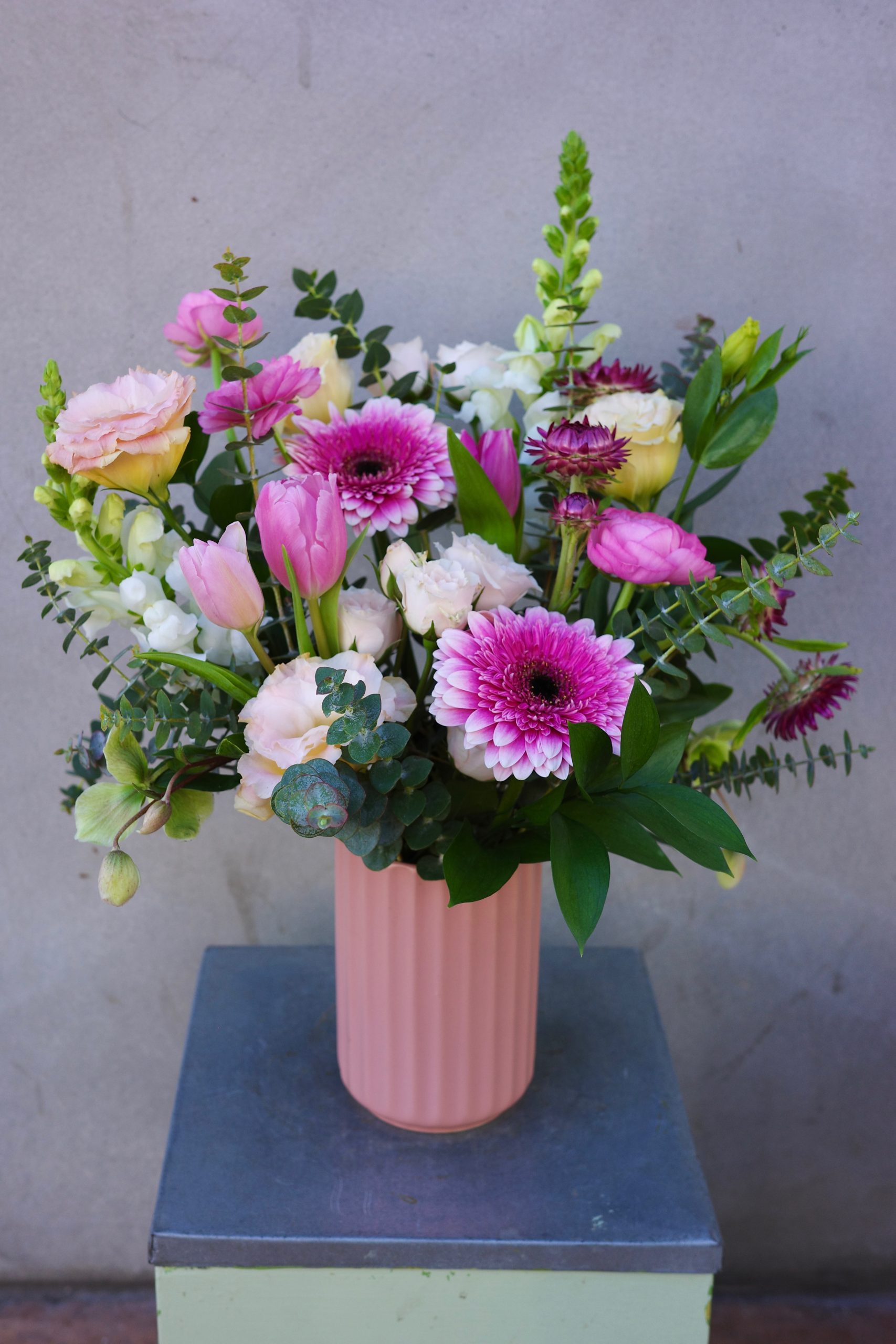 Please note: flower selection is based upon seasonal availability and may vary from image shown. The Design will stay true to the aesthetic of the pictured arrangement and always of full value.
